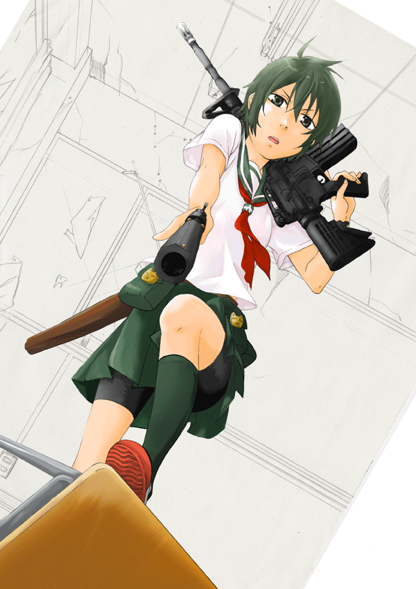 小説でキノが自動小銃を片手連射してたのが漢前すぎて惚れたので、そんな感じのを描きたかったんですがね…。初描き自動小銃の巻。クッ!!