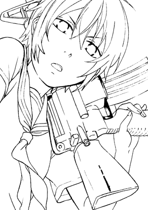 んで、そのままズルズルとPCに入れて元の絵に貼り付けて銃だけ先に色塗って、キノの色分け途中で時計を見たら4時半くらいになっててビックリしたわ…。