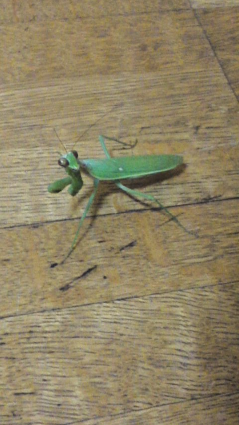 最後は左手に夢中になり過ぎて私に背を向けたカマキリの胴を右手で掴んで、体をねじって必死に抵抗する奴をベランダから暗い夜空の下にブン投げました。